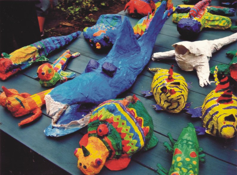 wir Alebrijes aus Zeitung und Kleister. Die Figuren leben von einer großen